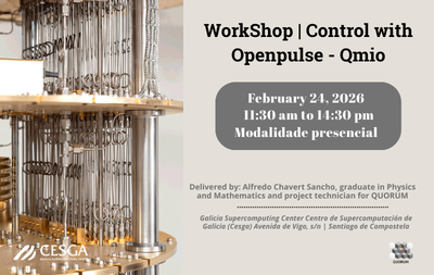 Title: WorkShop on Control with Openpulse - Qmio. The Galician Supercomputing Centre (Cesga), through the Quorum project, will offer an introductory workshop related to pulse control in superconducting qubits on Tuesday, 24 February. Contents: - Introduction to pulse control. - Mechanisms related to the implementation of native quantum gates - Qmio. - Experiments to study [...]