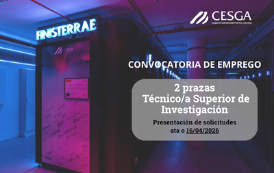Descrición do posto de Técnico/a superior de investigación en HPC O posto está enfocado á prestación de servizos científico-técnicos avanzados en computación de altas prestacións (HPC) e tecnoloxías asociadas, orientados ao apoio directo á actividade investigadora e de transferencia, mediante o deseño, implantación, mantemento e mellora de plataformas, contornas e aplicacións científicas sobre as infraestruturas [...]